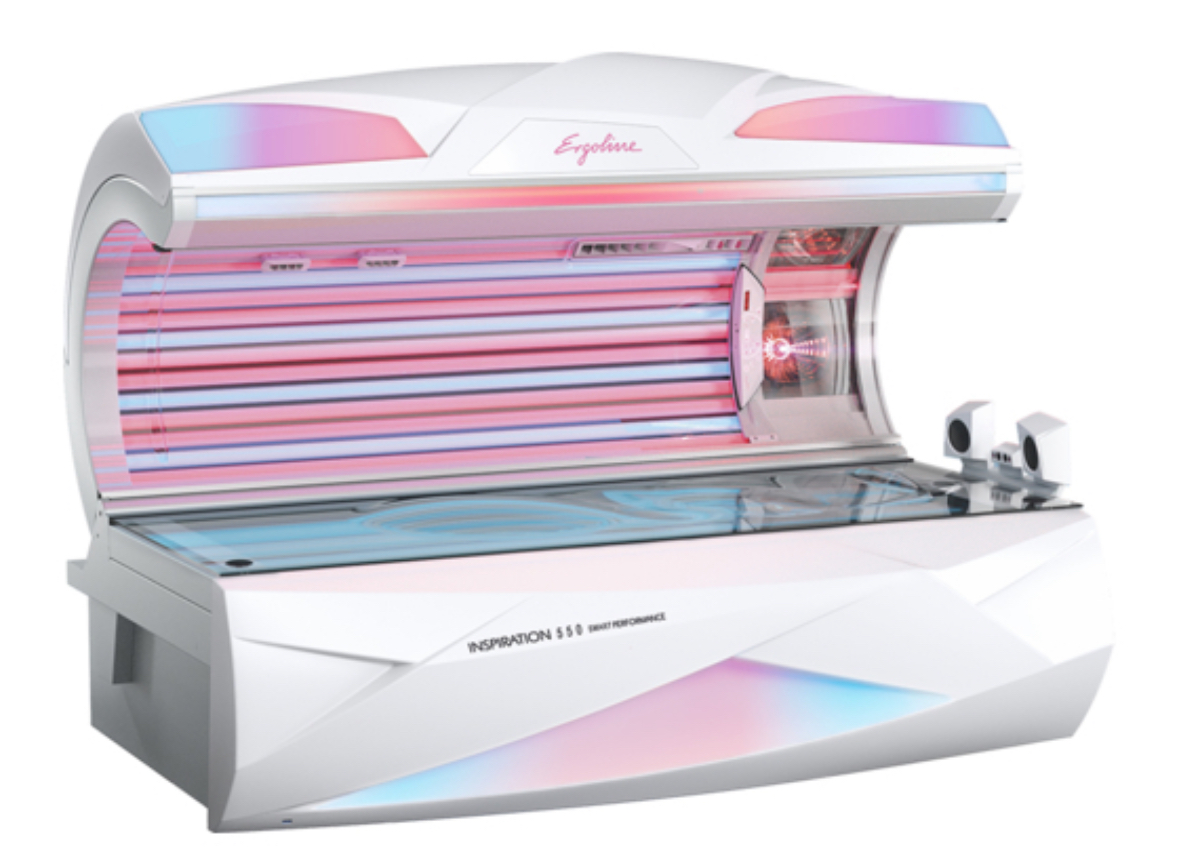 The Ergoline 550 Hybrid is your skincare + sun-kissed glow all in one luxurious session.